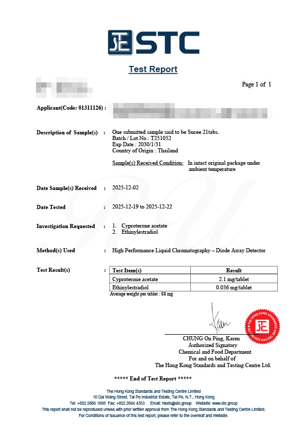 ※上記は、タイでの適応です。(本剤は経口避妊薬として機能しますが、避妊のみを目的とした使用は推奨されません。アンドロゲン依存性疾患の治療を必要とする女性が適応です。)