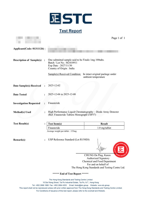 1フィルムコーティング錠中:フィナステリド インド薬局方 1mg、添加剤 適量