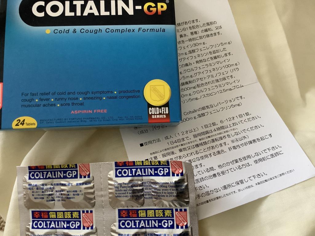 ColtalinGP(コルタリンGP)は有効成分のパラセタモール(アセトアミノフェン)、クロルフェニラミンマレイン酸塩、フェニレフリン塩酸塩、グアイフェネシンを含有しています。風邪の諸症状(咳、発熱、寒気、鼻水、鼻づまり、頭痛、筋肉痛、副鼻腔痛、喉の痛み)を緩和する薬です。