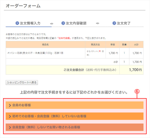 - ◆会員登録をせずにお買い物をしたいお客様の場合