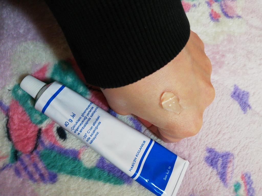 お肌にスーッと入るジェルで直接塗っても良いのですが、化粧水や乳液、ヒルドイドローション0.3と混ぜて使うのが良いかなと思います。