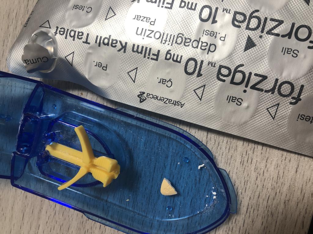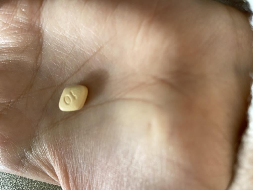 菱形の錠剤10mgをピルカッターで半分にして、朝服用しています。