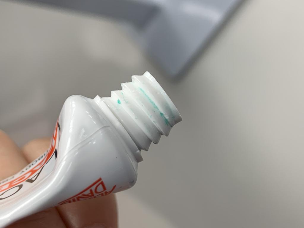 青い色をしたジェルで、歯磨き粉っぽかったので説明書をきちんと読んで