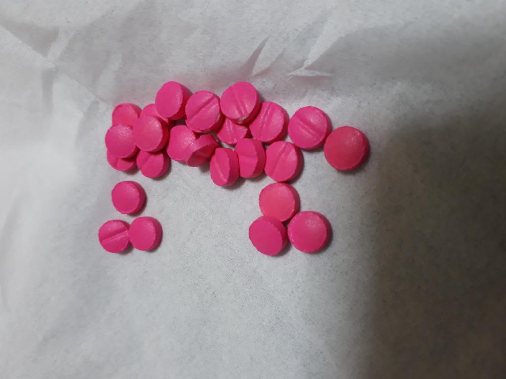 日本では見慣れない蛍光ピンク色ですが、小粒なので飲みやすいです。