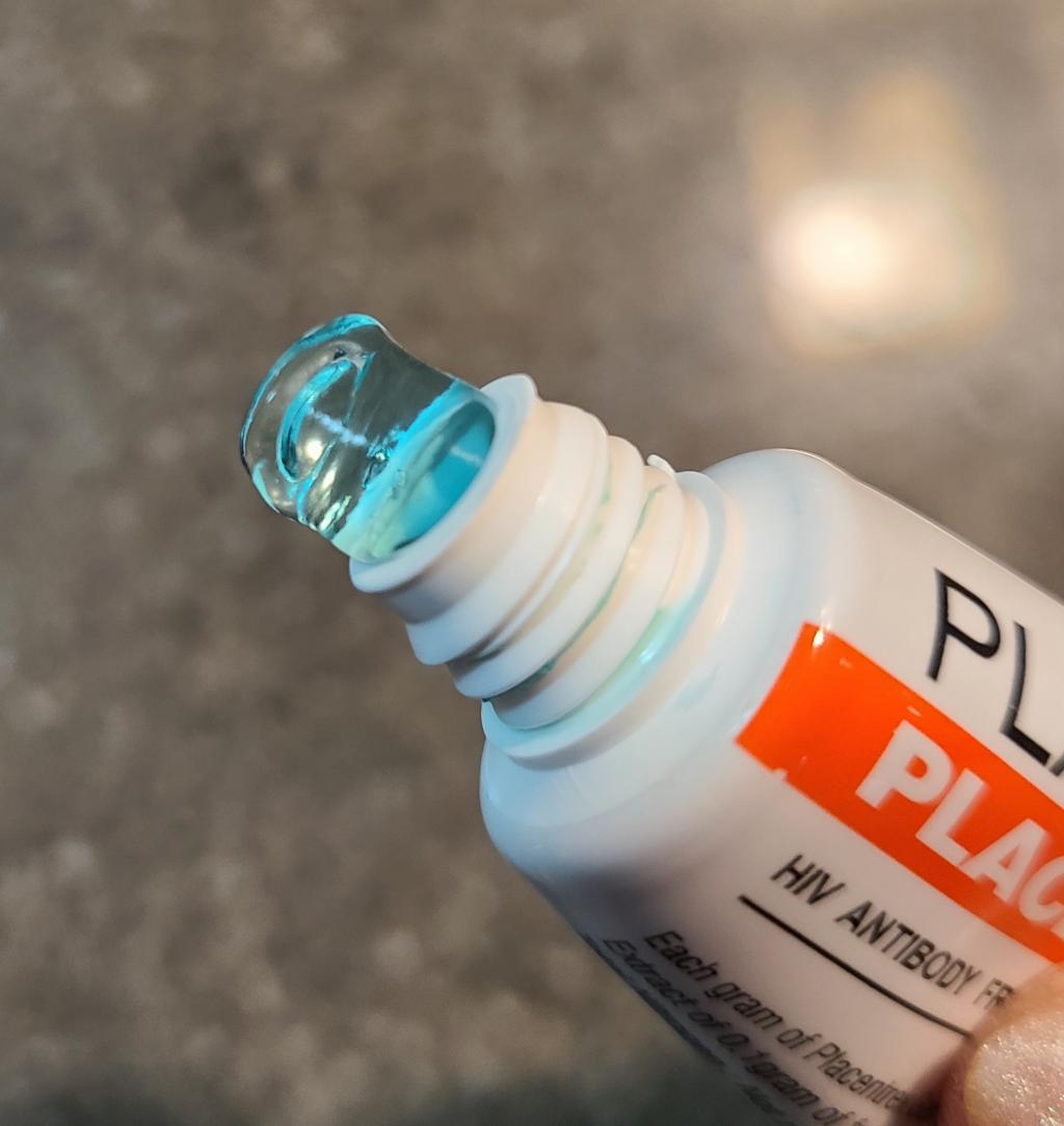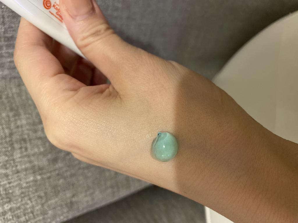 真っ青なジェルです。最初は付けるのに抵抗があります。肌荒れも全然しないし肌が調子いいです。これだけだと乾燥するので美容液みたいな感じで使ってます。