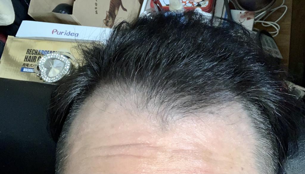 耳上5cm辺りにあったハゲの境界線や剃り込みを入れたかのように広くなり始めたおでこも元に戻りました。