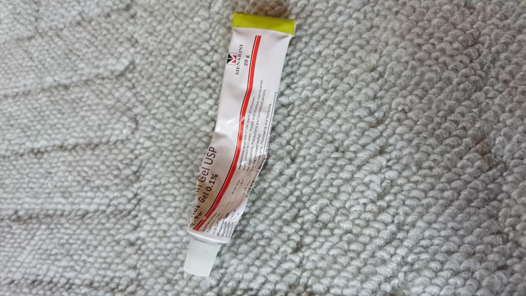 コスト考えてこちらに乗り換えです。クリームはジェル状ですね。以前の0.05%では、顔の厚い皮膚部位は効果を感じられなかったこともあり、0.1%にしました。オデコでも効果が表れたので良かったです。