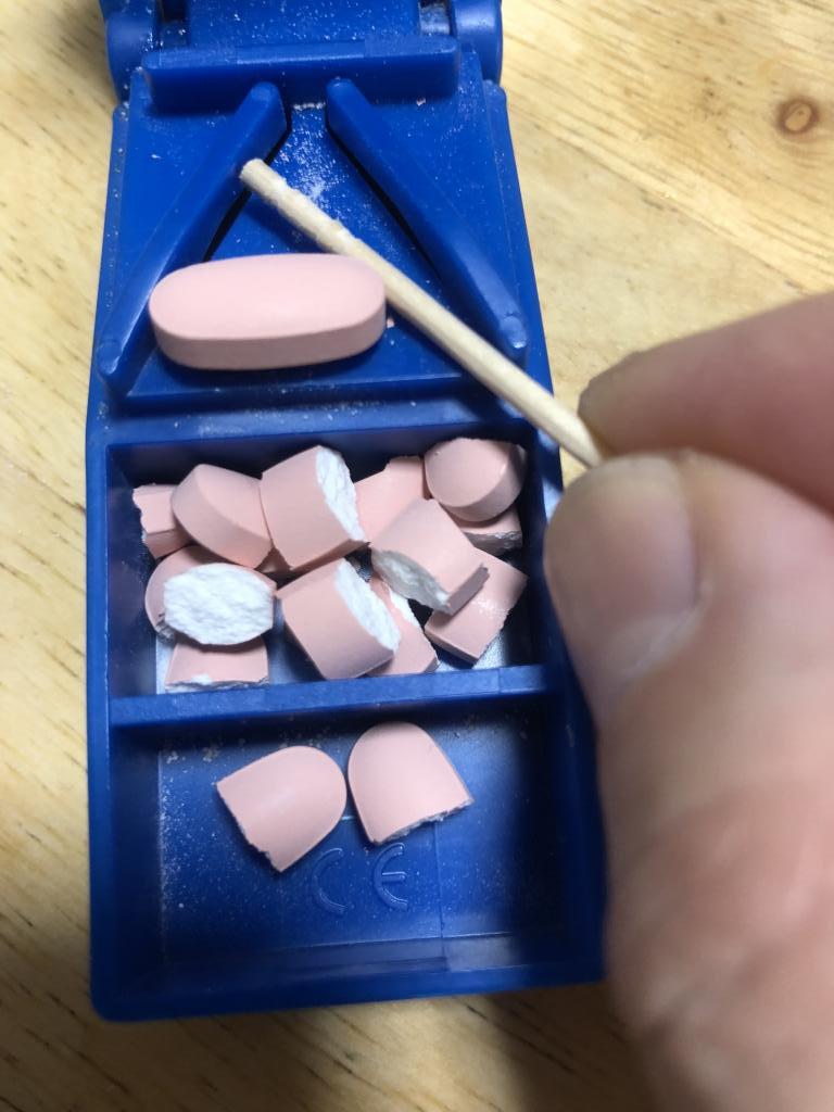 ピルカッターで半分にするのが面倒と思っていましたが、意外と簡単に切ることができます。