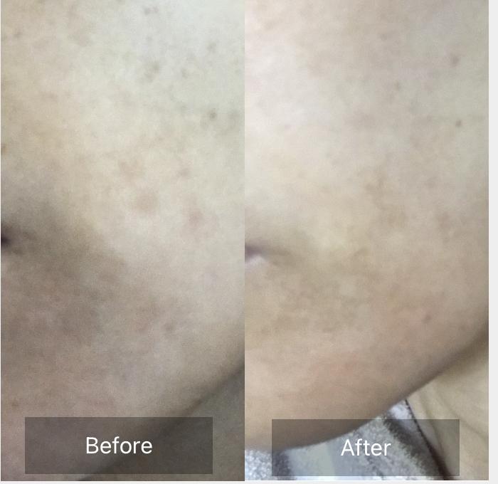 頬にシミが出来て気になったので、ユークロマと合わせて購入しました。効果はありました。気にしていたシミの濃さが半分くらいになりました。でも完全には消えないので期待し過ぎには注意。あと、皮が向けるとヒリヒリ痛いです。紫外線が弱くて外出の少ない時期に施しましょう。